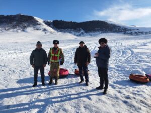 2025-2026-жылдагы кышкы туристтик сезондо Ат-Башы районунун аймагында муз үстүндө тебүү учурунда адамдардын өмүрунө жана ден соолугуна коркунуч келтирген кырсыктардын алдын алуу максатында Ат-Башы райондук мамлекеттик администрациясынын кызматкерлери менен Ат-Башы райондук Өзгөчө кырдаалдар бөлүмүнүн кызматкерлери тарабынан түшүндүрүү жана алдын алуу иш-чаралары жүргүзүлүүдө.