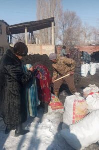 Бүгүн 2026-жылдын 13-январында Ат-Башы районунун аймактарында Ат-Башы райондук мамлекеттик администрациясынын жетекчилигинин сүйлөшүүсүнүн натыйжасында КЫРГЫЗСТАН-КЫТАЙ-ӨЗБЕКСТАН темир жолун куруп жаткан компания тарабынан социалдык жардамга муктаж аз камсыз болгон 100 үй-бүлөгө көмүр отунан жардам көрсөтүлдү.